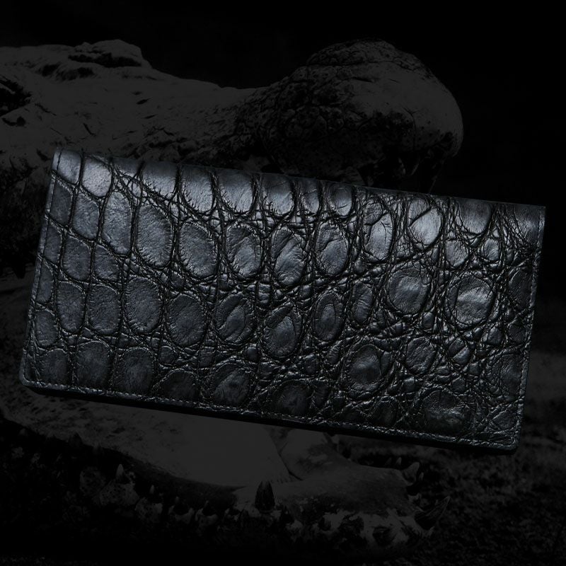 【池田工芸】《数本限定》野生を生き抜いた “最強” の革を味わい尽くす アリゲーター ホールカット「顎」長札入れ《スミクロ》 【5月7日頃出荷】