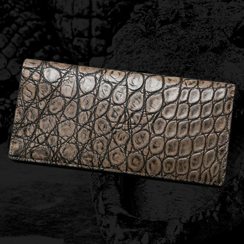 【池田工芸】《数本限定》野生を生き抜いた “最強” の革を味わい尽くす アリゲーター ホールカット「顎」長札入れ《トゥルティエールグレー》 【5月7日頃出荷】