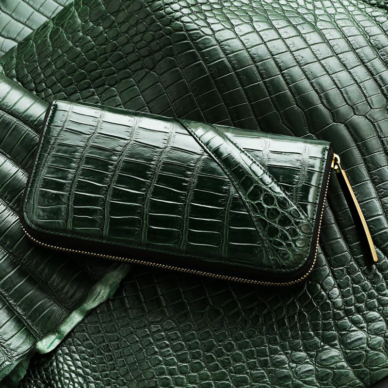 【池田工芸】《 80周年記念 》“王者の緑”クロコダイル2頭仕立て。富をつかんで離さない縁起最強の「守護財布」