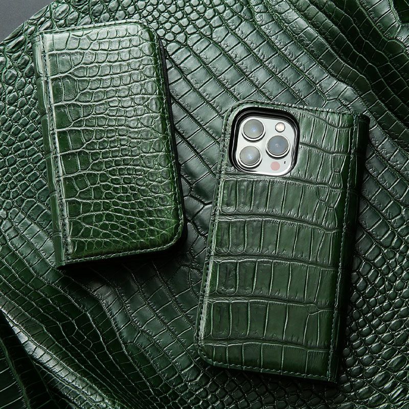 【池田工芸】社長へ贈る、「財運最強」王者の緑クロコダイル iPhoneケース〈iPhone 12 Pro Max ~ 16 Pro Max / 14 Plus / 15 Plus仕様〉【4月30日頃出荷】