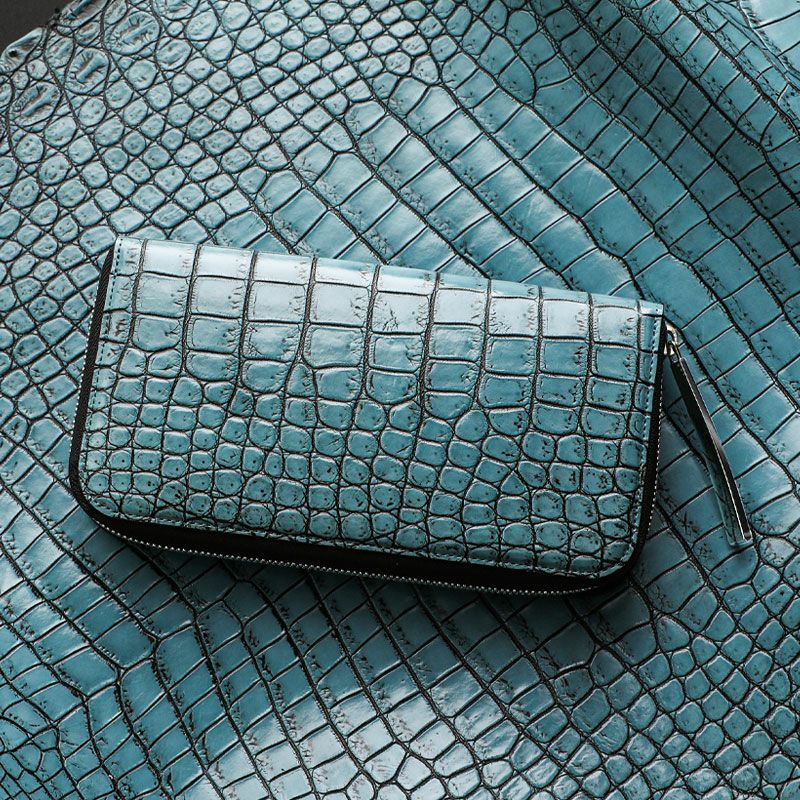 【池田工芸】《アルチザンクロコ》日本の海の神々しい青を表現した「海神 -ワダツミ-」クロコダイル“一枚革”財布