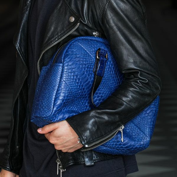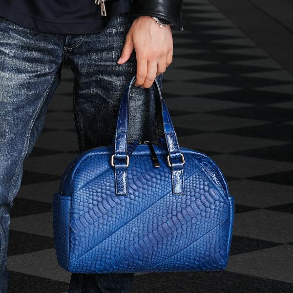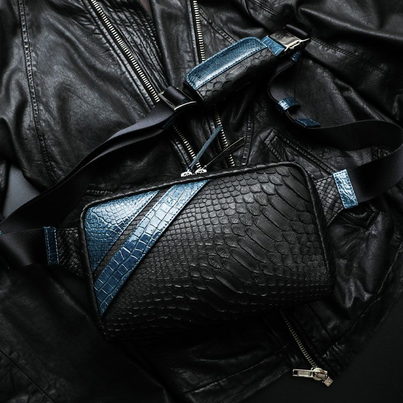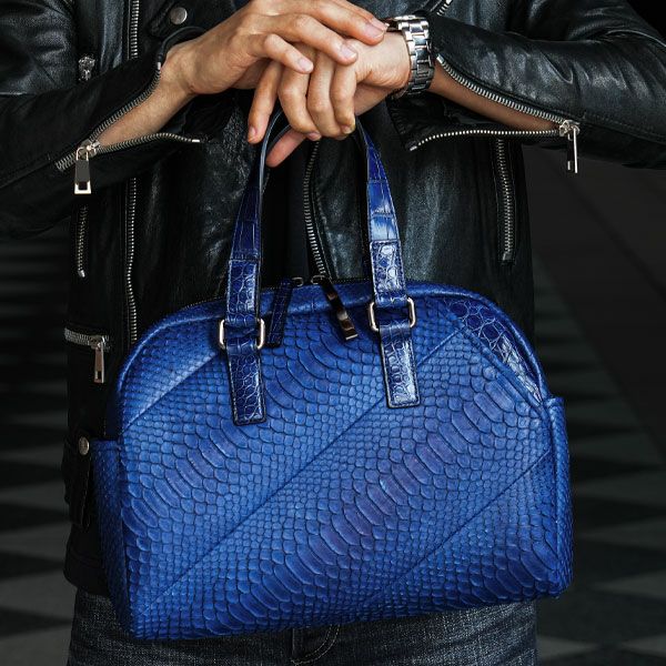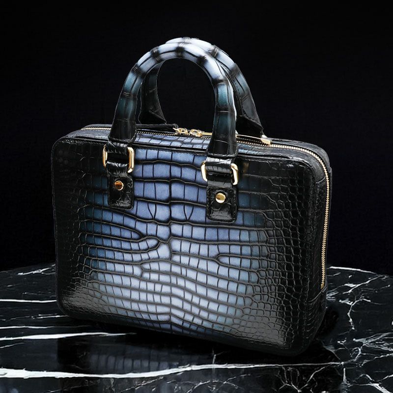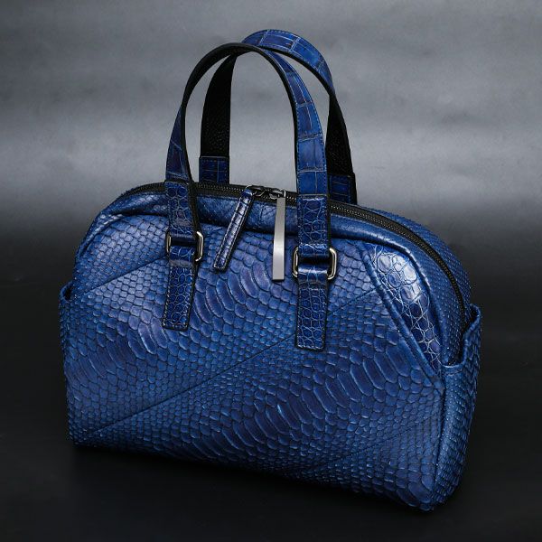 【残りわずか】藍染めクロコ/内装スモークベージュ