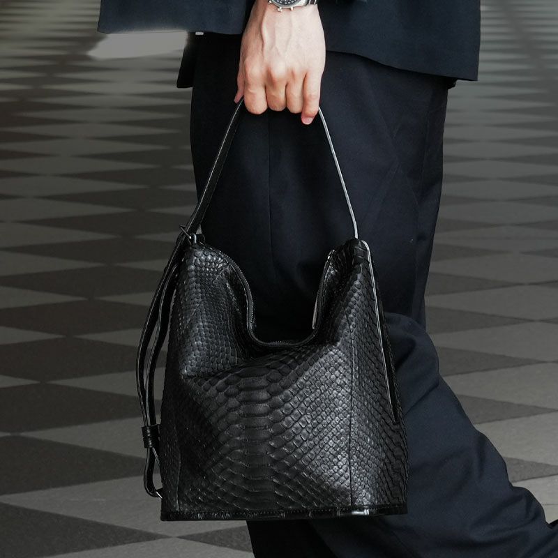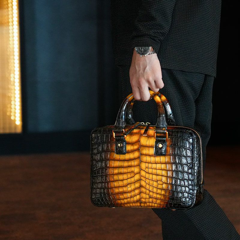 【残りわずか】マットブラッククロコ/内装スモークベージュ