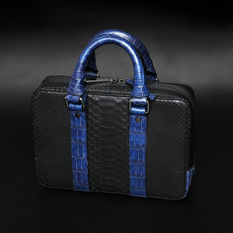他の画像を見る 【池田工芸】日本の伝統「藍染めクロコ」×パイソン仕立て。日本料亭での会食にふさわしいブリーフバッグ Denim Crocodile Python “Dinner Brief”【5月14日頃出荷】 藍染めクロコダイル クロコダイル×パイソン 販売価格 ¥ 330,000 税込 お気に入りに登録する