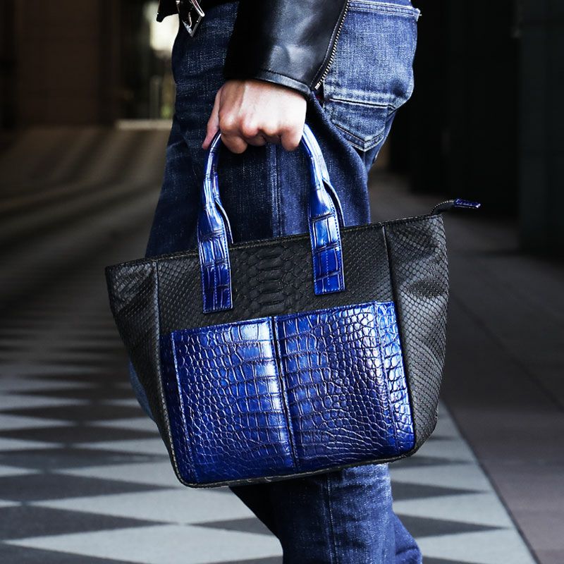 他の画像を見る 【池田工芸】藍染めクロコダイル×純黒パイソン。池田の“おまかせ”仕立てトート Denim Crocodile × Python Golf Tote(ゴルフトート)【2月5日頃出荷】 藍染めクロコダイル クロコダイル×パイソン 販売価格 ¥ 418,000 税込 お気に入りに登録する
