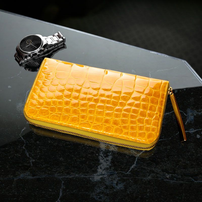 【池田工芸】《本数限定》“革の宝石”を体現する、気品の艶イエロー。Crocodile Long Wallet “Yellow Diamond”(クロコダイル定番長財布)