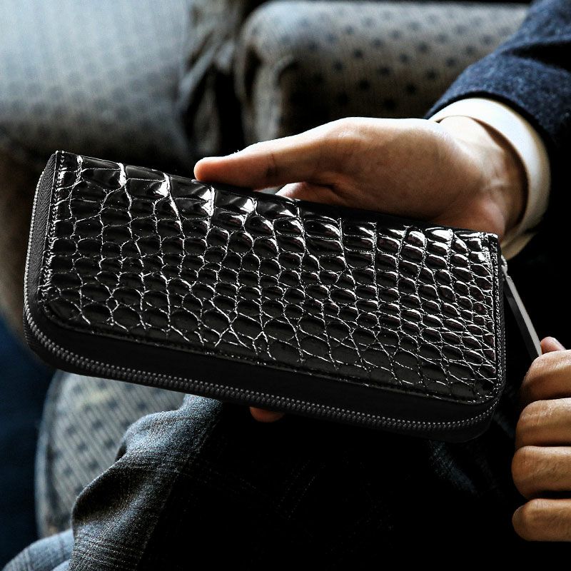 【池田工芸】宝石の艶クロコダイルに、没入する。クロコダイル一枚革財布 “グランデクラス” 《ブラックモデル》【1月29日頃出荷】