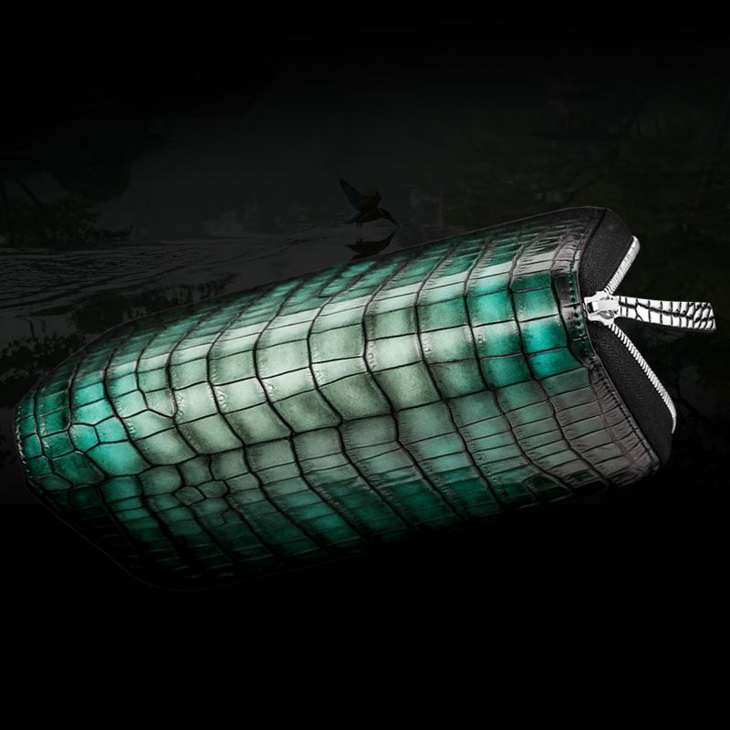 【池田工芸】史上最も静けさに満ちた、美しい「侘び」の彩飾。ギルドクロコダイル一枚革財布「翡翠」《シルバー925×両面クロコダイルカーブカン》モデル【2月5日頃出荷】
