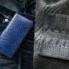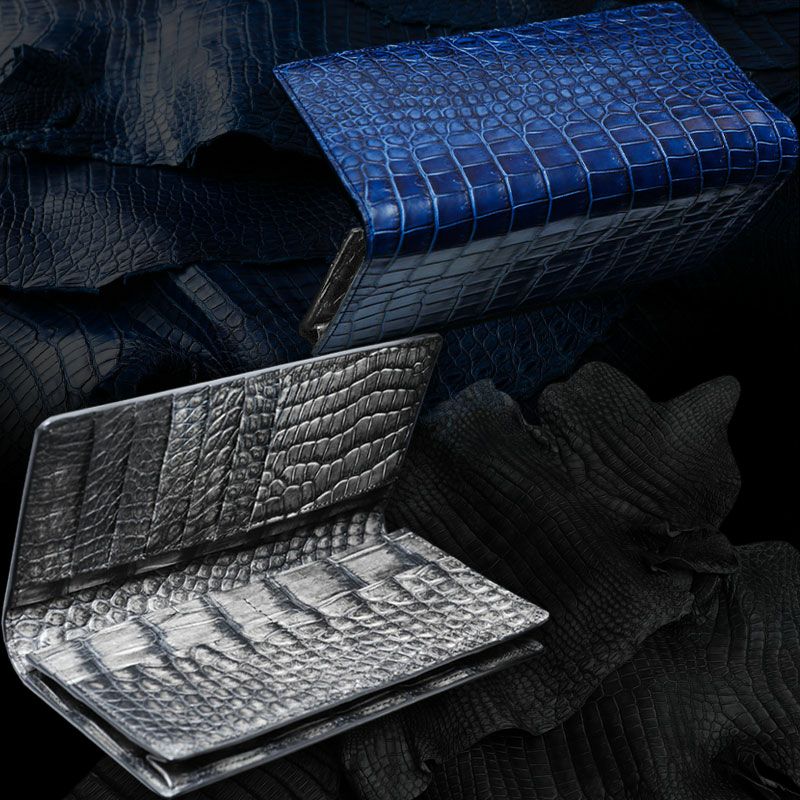 【池田工芸】《 特別仕立て 》外も内もすべて伝統染めクロコダイル。『藍染め』×『墨染め』クロコダイル“無双”長札入れ【4月23日頃出荷】