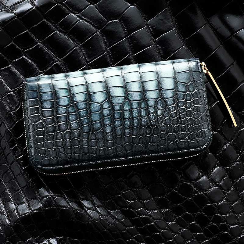 【池田工芸】大海原の神秘のロマン。幻の白鯨を描いた“彩飾グラデーション”クロコダイル一枚革財布「白鯨」【4月30日頃出荷】