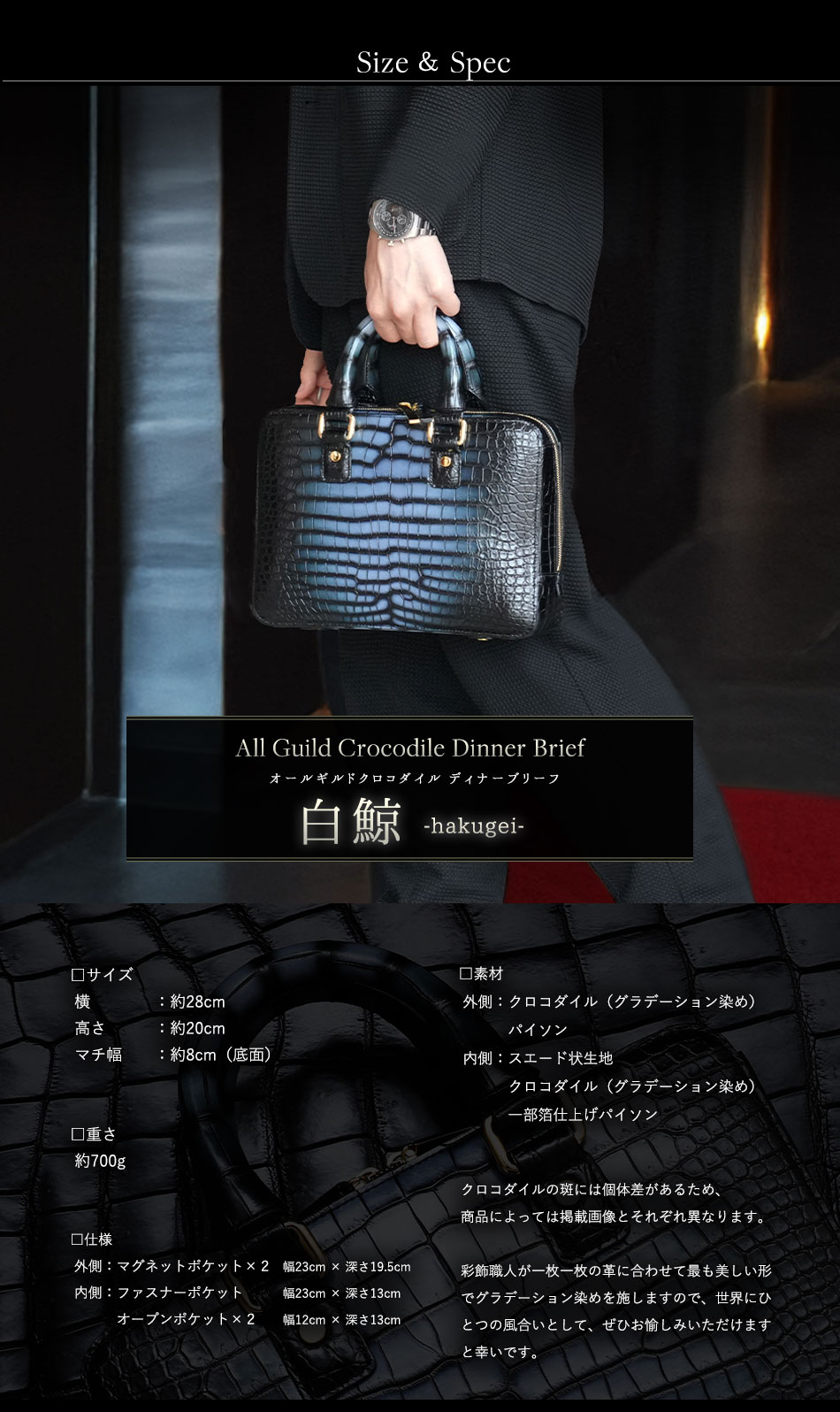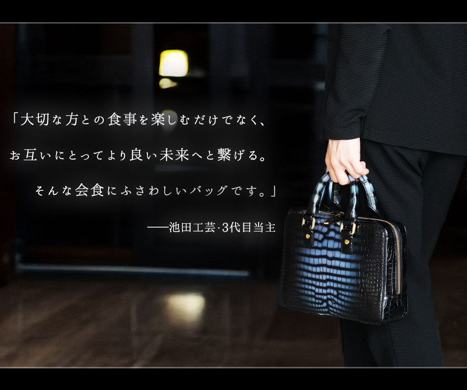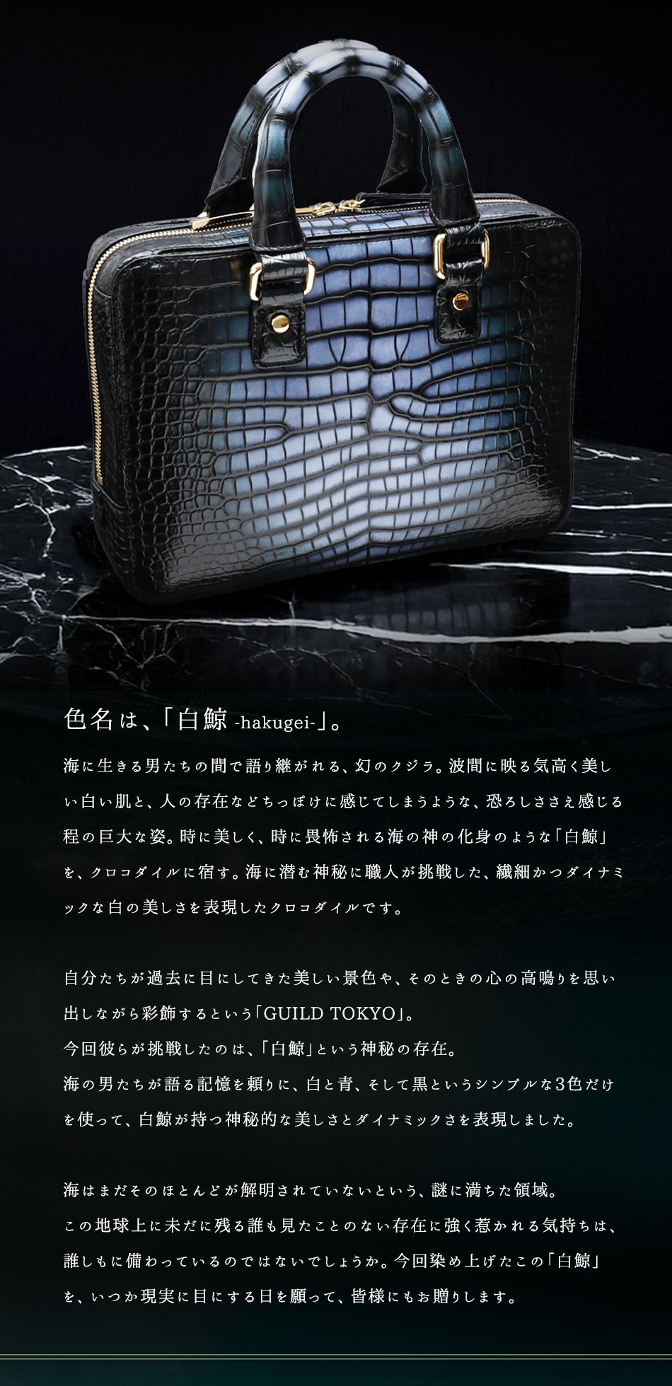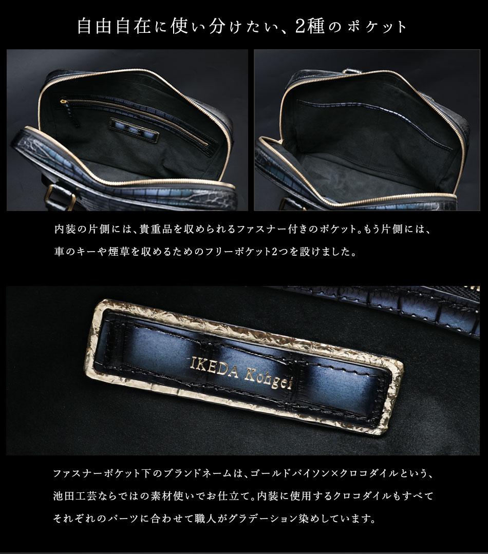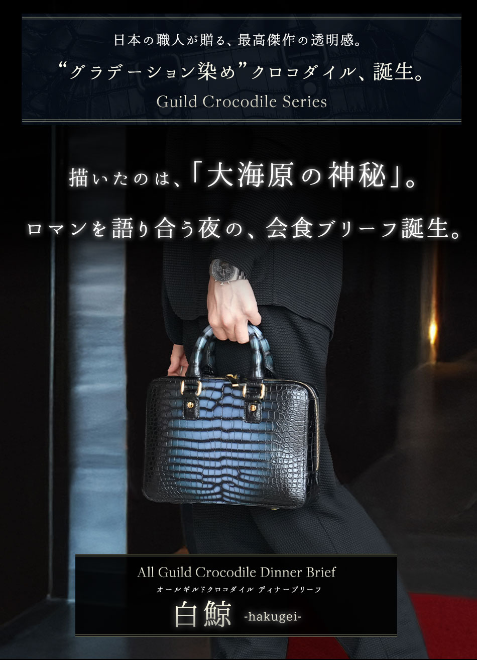 【池田工芸】ロマンを語り合う夜に。“彩飾グラデーション”クロコダイルで仕立てる、会食ブリーフバッグ All Guild Crocodile “Dinner Brief”「白鯨」【11月27日頃出荷】