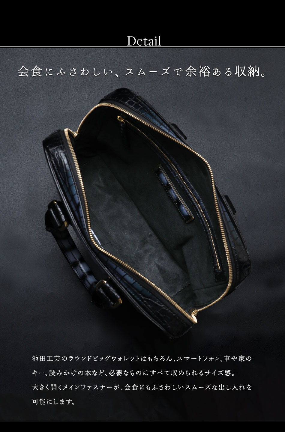 • クロコダイルスマートラウンドウォレット よりスマートに。好みのサイズで持つ、クロコダイルもう一つの選択肢。