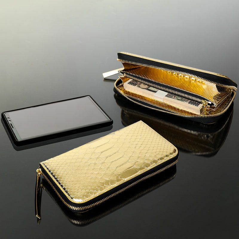 上質なクロコダイルとゴールドパイソンを使った究極の開運財布