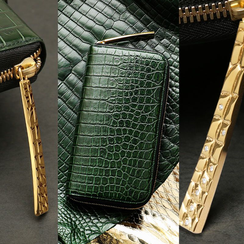 【池田工芸】《 80周年記念クロコ 》 強く美しい「王者の緑」。史上最強“ティラノ”クロコダイル財布『ダイヤモンド・18金カーブカン』モデル【4月30日頃出荷分】