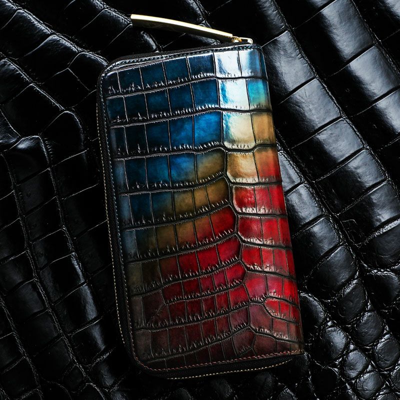 他の画像を見る 【池田工芸】《 特別仕立て 》外も内もすべて伝統染めクロコダイル。『藍染め』×『墨染め』クロコダイル“無双”長札入れ【1月15日頃出荷】 オールクロコダイル 藍染めクロコダイル 墨染めクロコダイル 販売価格 ¥ 374,000 税込 販売期間 2025/11/17 10:00 〜 2025/11/20 23:59 詳細を見る お気に入りに登録する