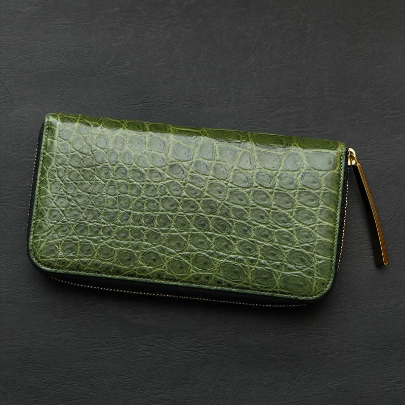【池田工芸】《数本のみ復刻》日本の伝統色『常盤緑』のマットクロコダイルで仕立てる、極上ホールカット財布【5月28日頃出荷】