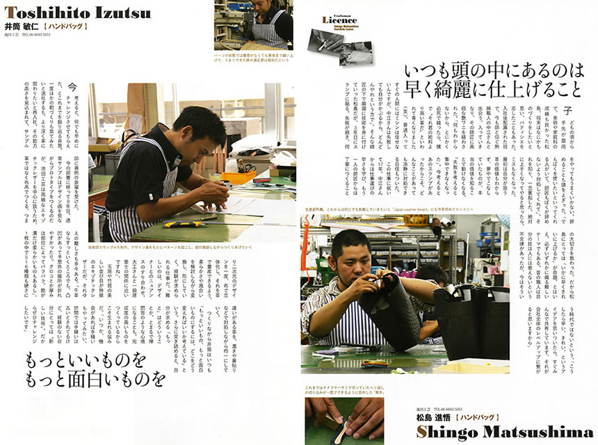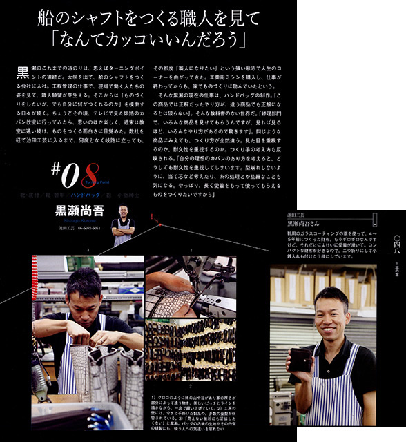 ■ 雑誌 『日本の革 no.6』に、池田工芸の熟練職人2名が特集されました。 |